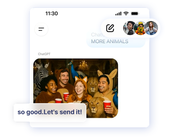 ChatGPT group chat adapts to your needs in work, study, and life. Teams can parse files, generate reports, and summarize meetings—boosting productivity by 67%. Study groups get instant explanations and personalized help. Friends and families can plan trips or meals based on combined preferences. With emoji reactions and image generation, AI support is both helpful and engaging.